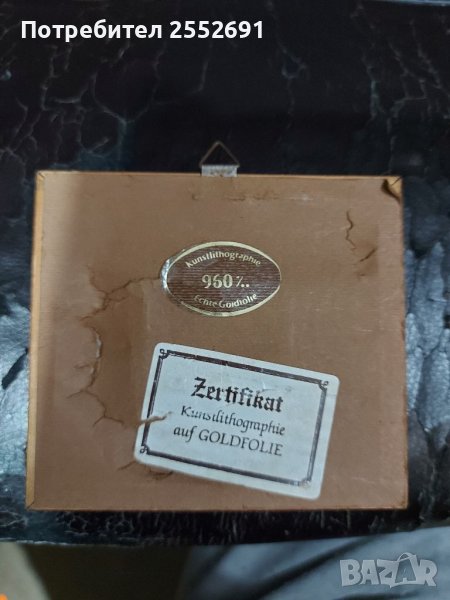 Художествена литография върху истинско златно фолио проба 960. Наличие на надпис "ORO FOGLI" Размери- 10,2/9,2/1см.