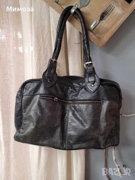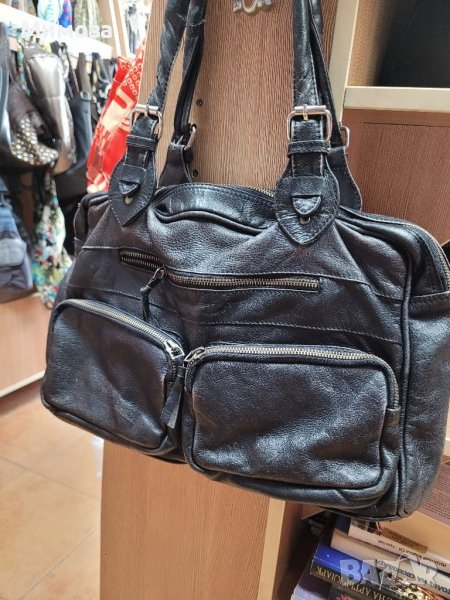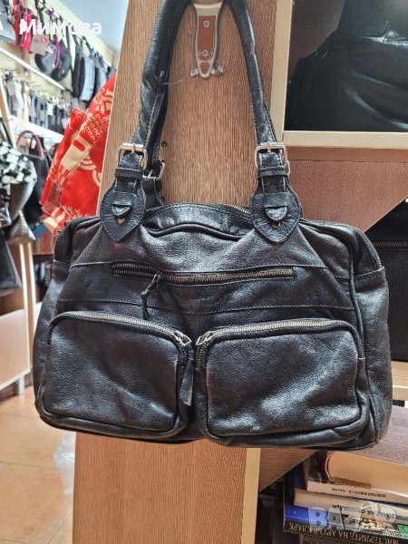 BON' A PARTE естествена кожа, черна чанта с много джобчета → Обява 41042803