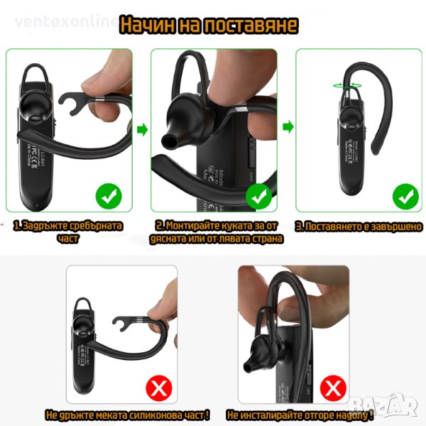 Безжична Bluetooth 5.0 Handsfree блутут слушалка за телефон 24 часа