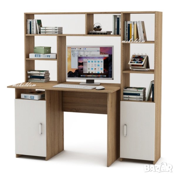Бюро 110см. с надстройка,врата и етажерка с плавна врата(код-0909) цветове-Дъб Сонома+Бяло,Венге+Дъб,ВЕНГЕ,Млечен дъб,ОРЕХ,БУК,Дъб Сонома,Светло сиво или БЯЛО