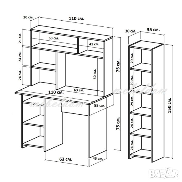 размери на бюро: 110 / 55 / височина 150см.(виж схемата)