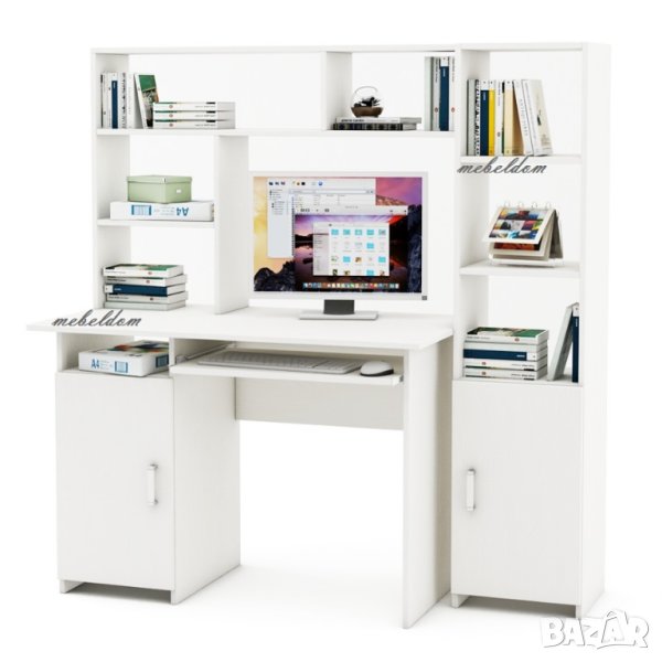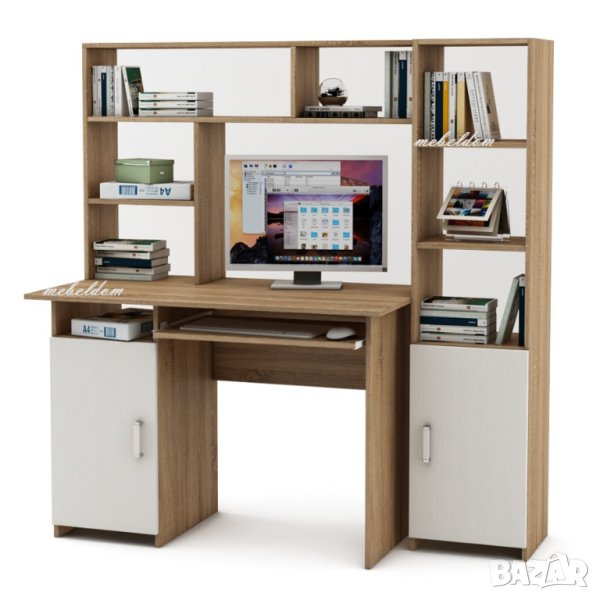 Бюро 110см. с надстройка,клавиатура и етажерка с плавна врата(код-0910) цветове-Дъб Сонома+Бяло,Венге+Дъб,ВЕНГЕ,Млечен дъб,ОРЕХ,БУК,Дъб Сонома,Светло сиво или БЯЛО
