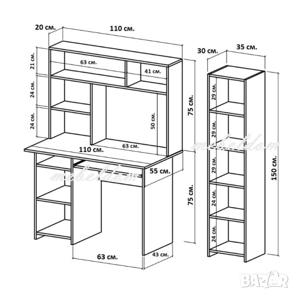 размери на бюро: 110 / 55 / височина 150см.(виж схемата)