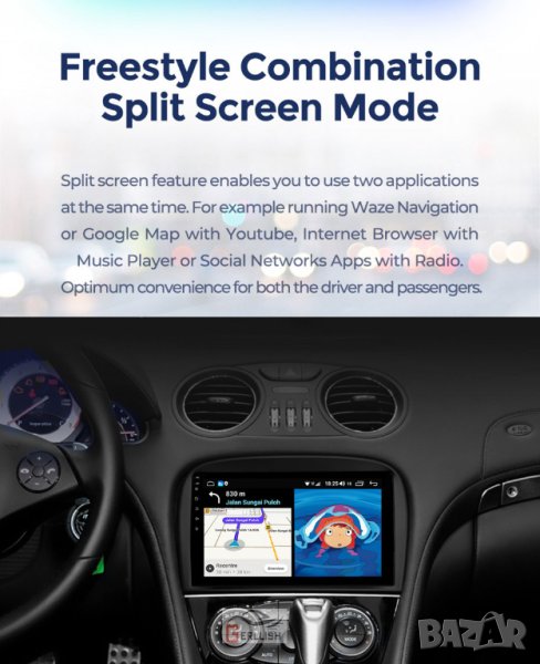 Поддържа всички навигации, съвместими с Android: IGO, WAZE, GOOGLE Maps и други