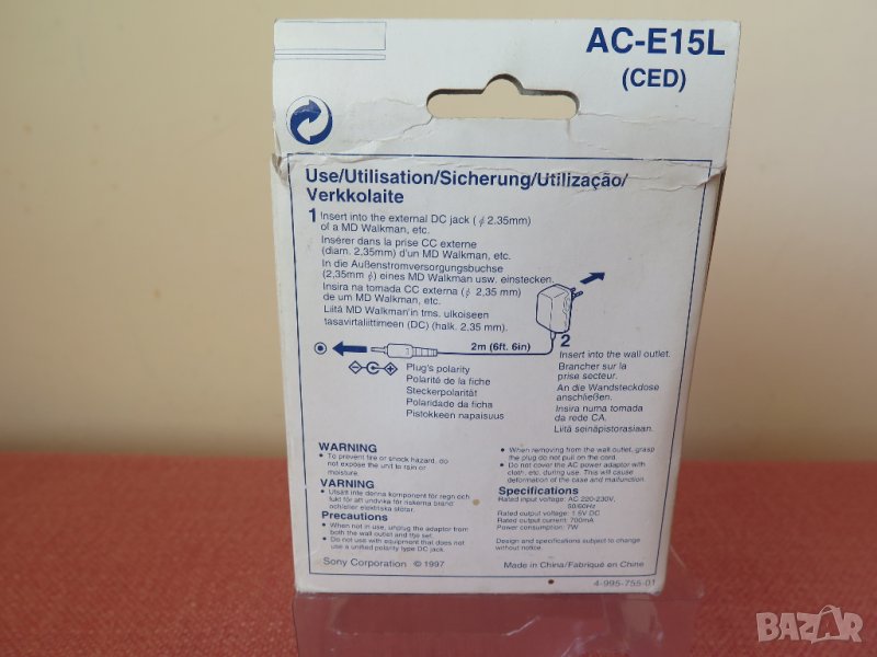 нов,Sony AC-E15L Output: 1,5V-700mA.Адаптер → Обява 41060556