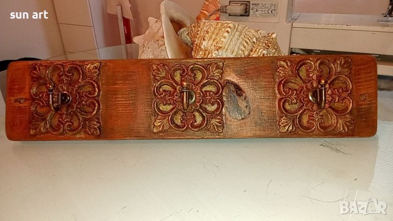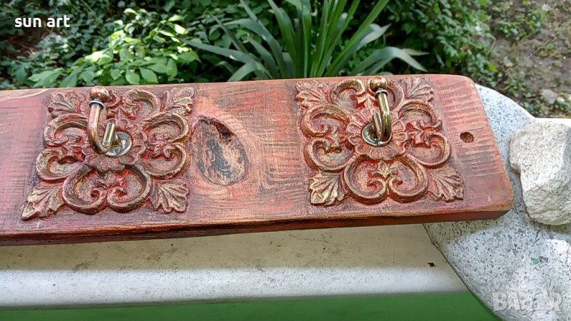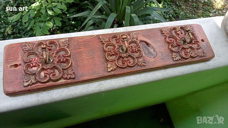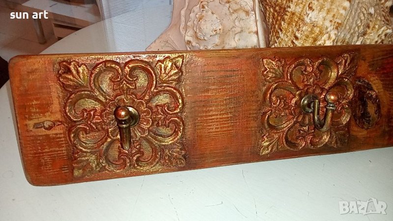 дървена закачалка с орнаменти в оранжево → Обява 41062256