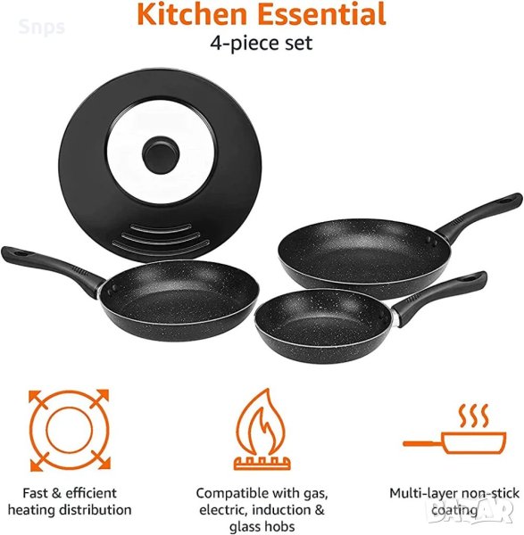 Алуминиев комплект индукционни тигани с незалепващо покритие от 4 части с универсален капак