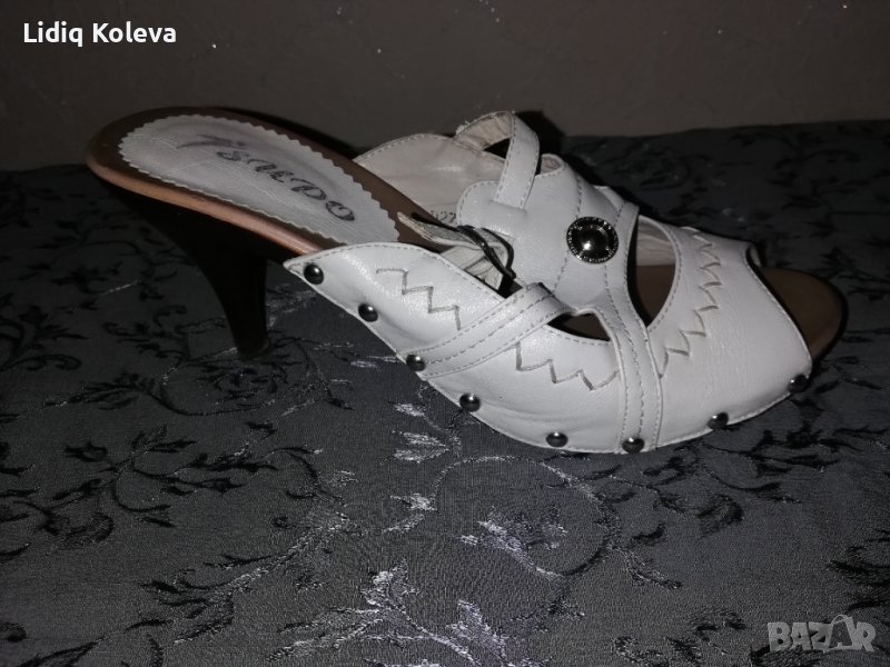 Дамски, бели чехли, на ток. Размер 38. Височина на