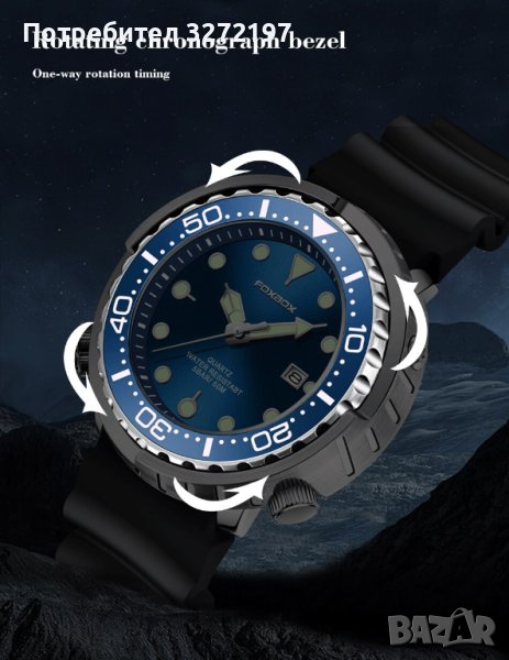 2023 FOXBOX спортен кварцов часовник,водоустойчив,подвижен безел,дата