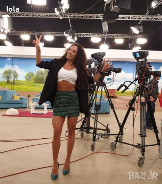 Карирана зелена пола със синджир. Отговаря на ХС размер.
