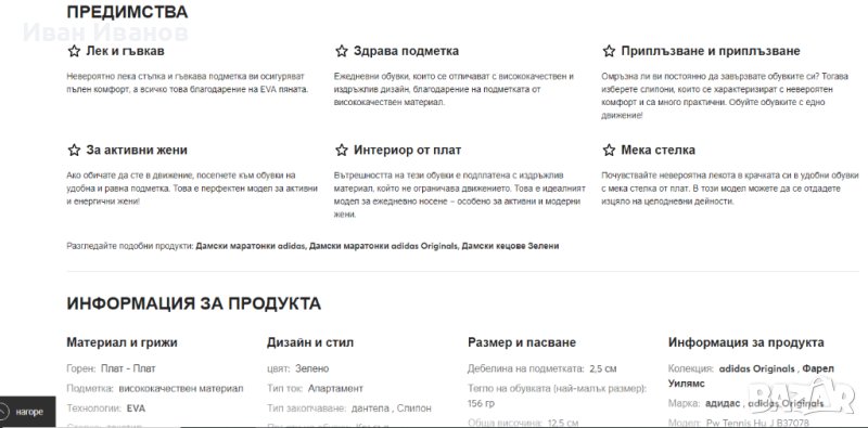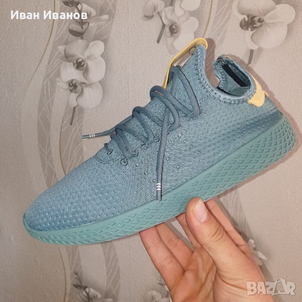 ADIDAS X PHARRELL WILLIAMS TENNIS HUJ B37078 Rawgrn/Rawgrn/OwhiteНови , само пробвани Красиви , модерни , удобни Фарел Уилямс празнува нюансите на човечеството. Сътрудничество с adidas Originals, тези юношески обувки са направени от инженерна мрежа, която се усеща като чорап. Бродирани 3 ленти и EVA подметка с мрежест модел допълват характерния външен вид.Работата на Фарел Уилямс в областта на музиката, филмите и модата размива границите, за да обедини различни елементи. Тези юношески обувки преработват класически тенис силует. Имат мрежеста горна част, подобна на чорап, и мрежест модел на външната подметка. Бродираните 3-ленти и подписите на Pharrells добавят креативно усещане.Характеристики:- Бродирани 3 ивици- Лепенка на петата и примка на езика с трилистник с надпис Pharrell Williams Hu- Удобна текстилна подплата- EVA междинна и външна подметка за леко омекотяване- Гумени вложки на външната подметкаЛек и гъвкавНевероятно лека стъпка и гъвкава подметка ви осигуряват пълен комфорт, а всичко това благодарение на EVA пяната.Здрава подметкаЕжедневни обувки, които се отличават с висококачествен и издръжлив дизайн, благодарение на подметката от висококачествен материал.Приплъзване и приплъзванеОмръзна ли ви постоянно да завързвате обувките си? Тогава изберете слипони, които се характеризират с невероятен комфорт и са много практични. Обуйте обувките с едно движение!За активни жениАко обичате да сте в движение, посегнете към обувки на удобна и равна подметка. Това е перфектен модел за активни и енергични жени!Интериор от платВътрешността на тези обувки е подплатена с издръжлив материал, който не ограничава движението. Това е идеалният модел за ежедневно носене – особено за активни и модерни жени.Мека стелкаПочувствайте невероятна лекота в крачката си в удобни обувки с мека стелка от плат. В този модел можете да се отдадете изцяло на целодневни дейности.