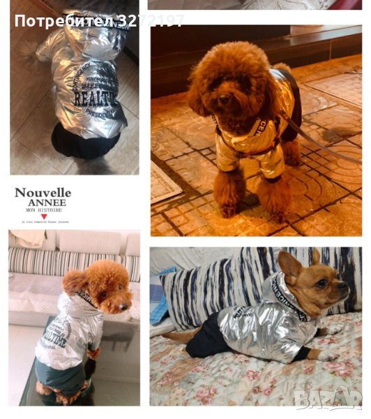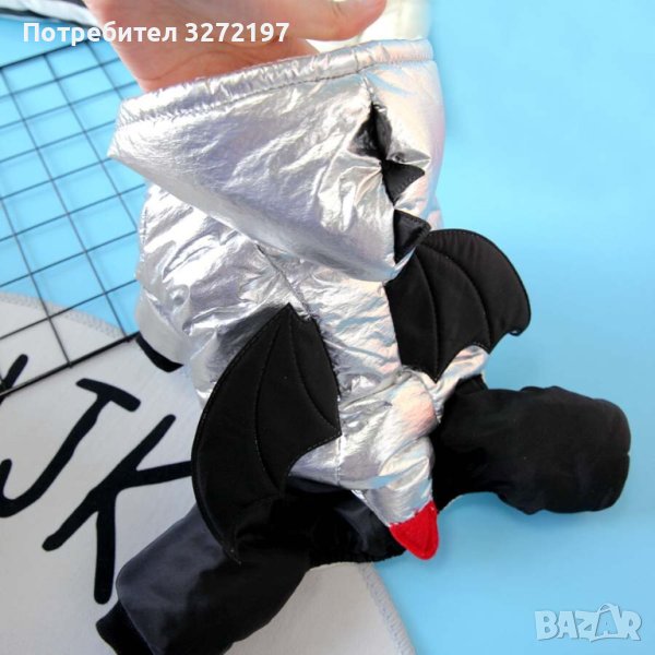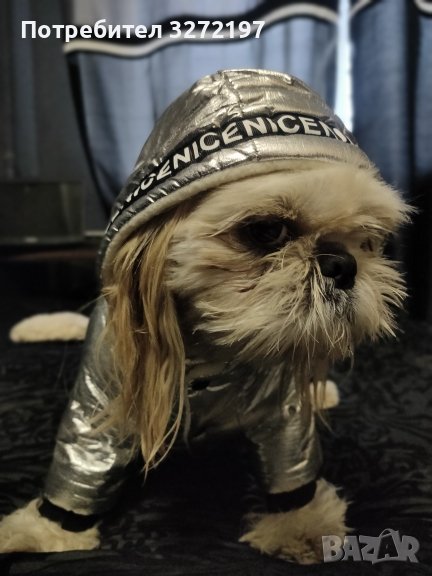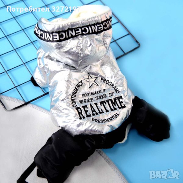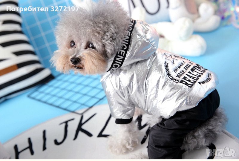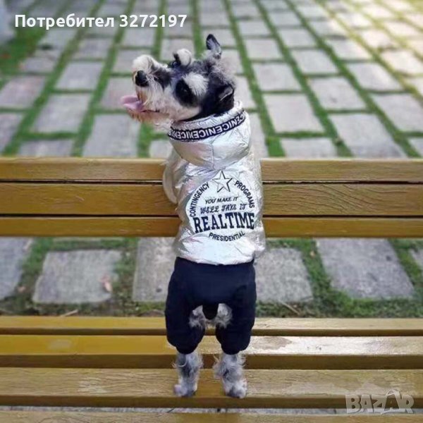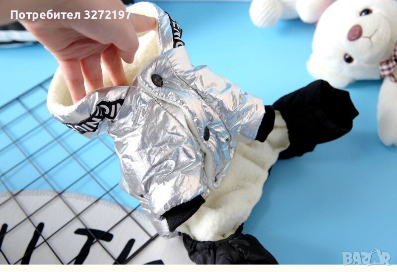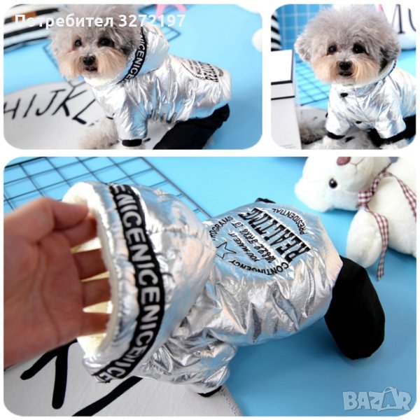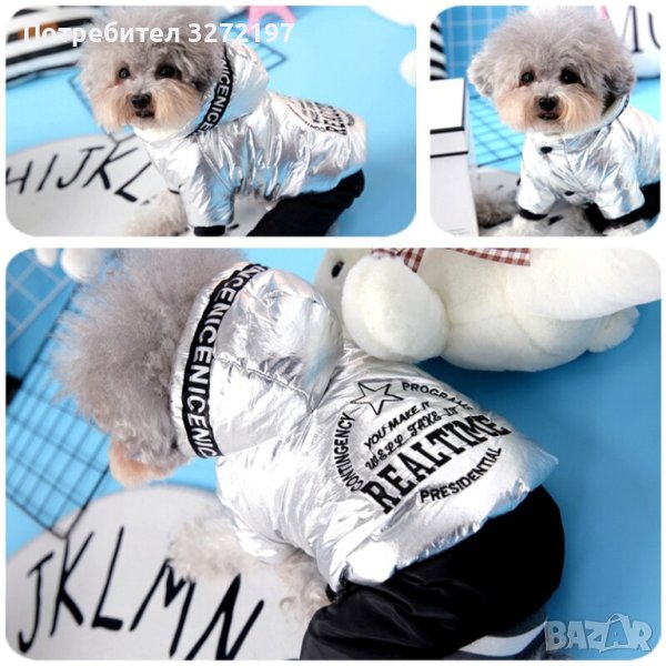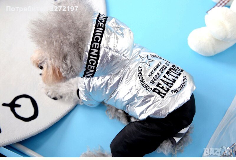 Дизайнерски,модерен,сребърен гащеризон за кучета ,топла, дебела материя с качулка,сезон есен,зима.