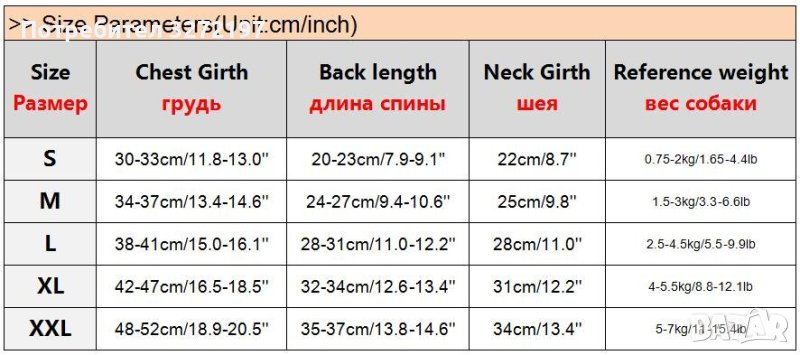 Гръдна обиколка: 30-33 см.