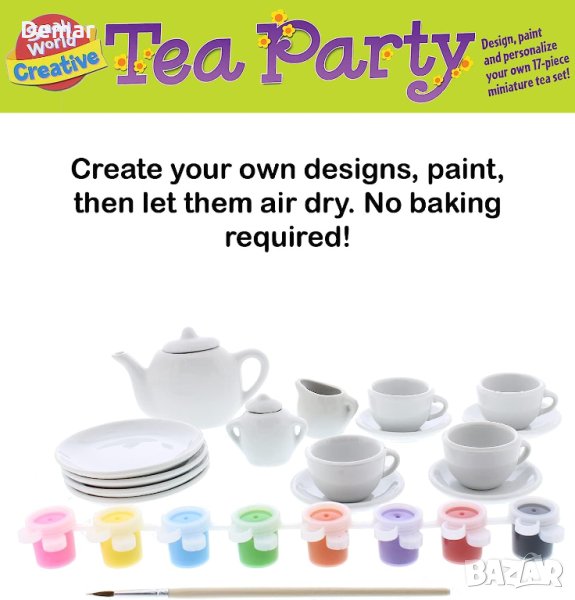 Направи си сам свой собствен миниатюрен комплект за чай от 17 части. Съхнещите на въздух трайни бои ви позволяват да използвате комплекта за чай и да се насладите на следобеден чай или на чаено парти с приятели и семейство.