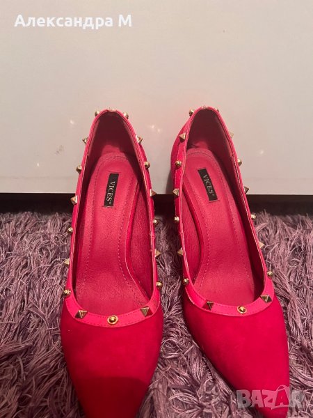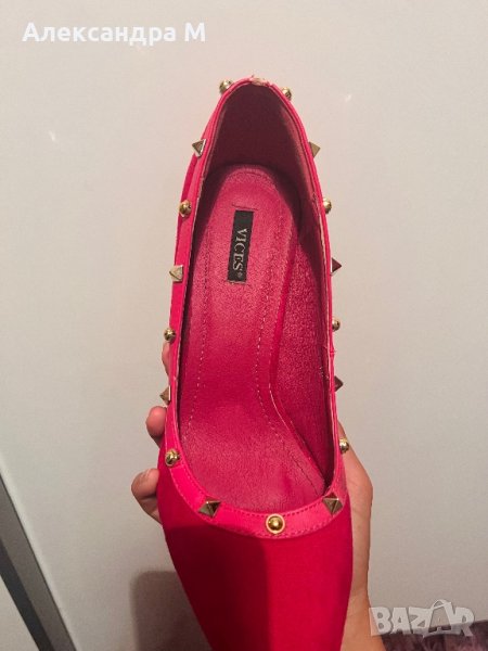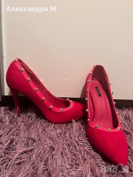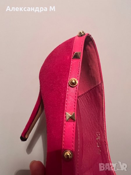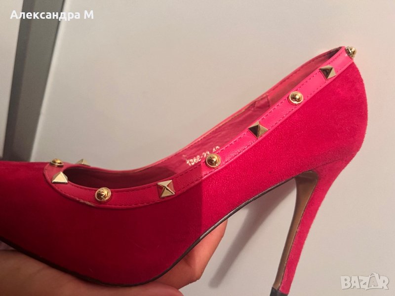 Уникални дамски токчета цвят неоново розово ( Hot pink) дизайн по подобие на марката Валентино.