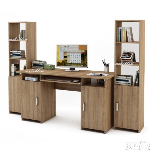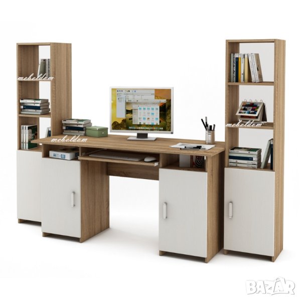 Бюро 143см. с 2 врати,клавиатура и 2 етажерки с плавни врати(код-0916) цветове-Дъб Сонома+Бяло,Венге+Дъб,ВЕНГЕ,Млечен дъб,ОРЕХ,БУК,Дъб Сонома,Светло сиво или БЯЛО