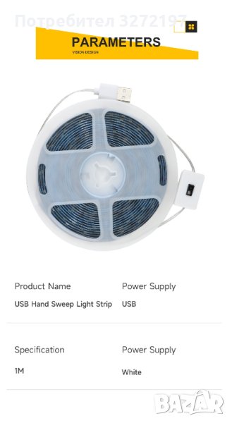 Лед светеща лента със сензор за включване,изключване,бяла светлина,1 метър