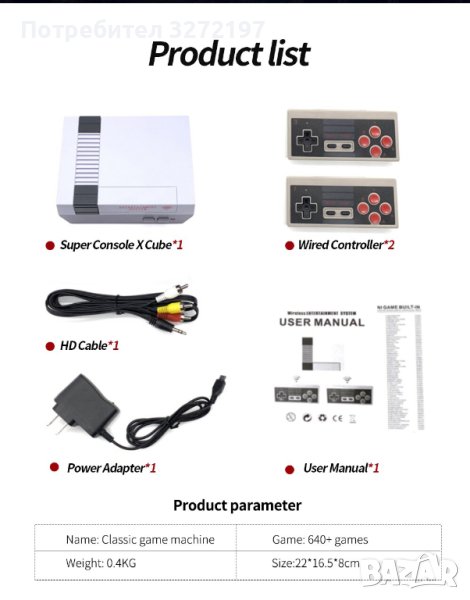 NES620 Video Game Console AV2.4G,игрова конзола 640 игри без повторения+2 безжични джойстка