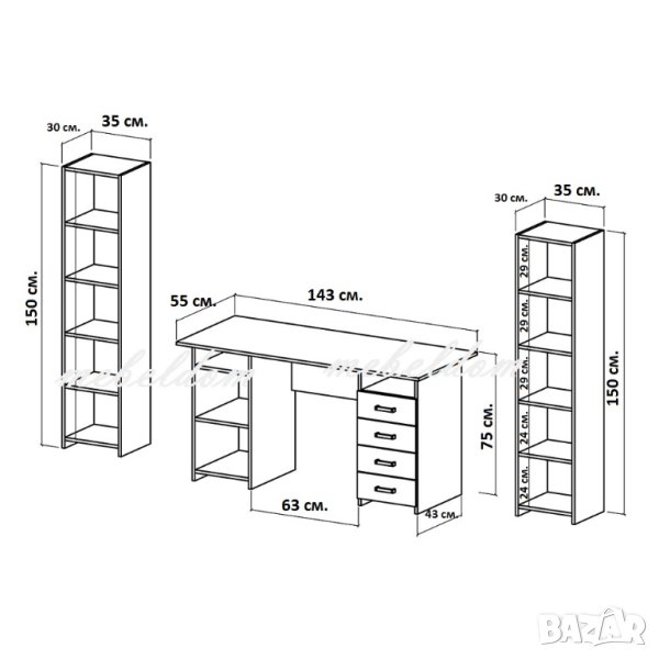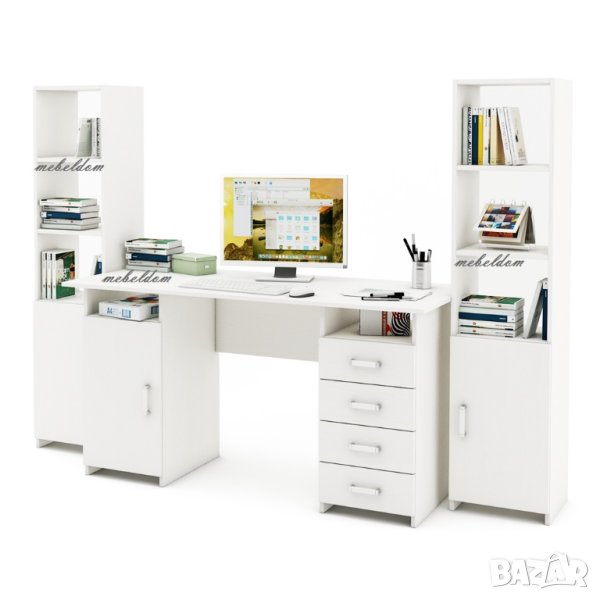 Бюро 143см. с 4 чекмеджета,врата и 2 етажерки с плавни врати(код-0919)