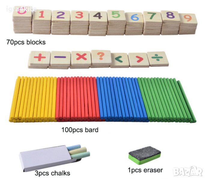 *В кутията се съдържат и цветни пръчици за броене.