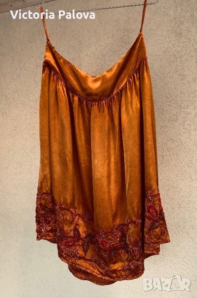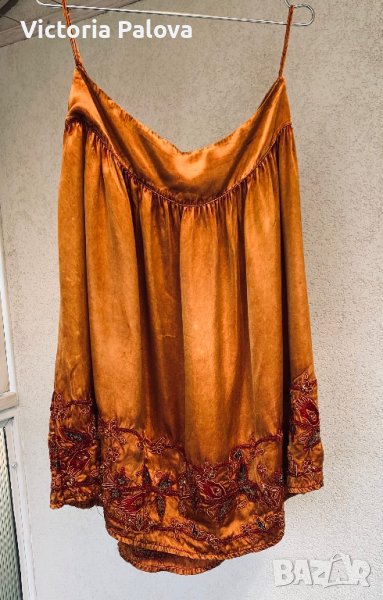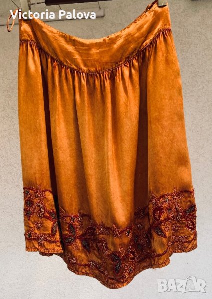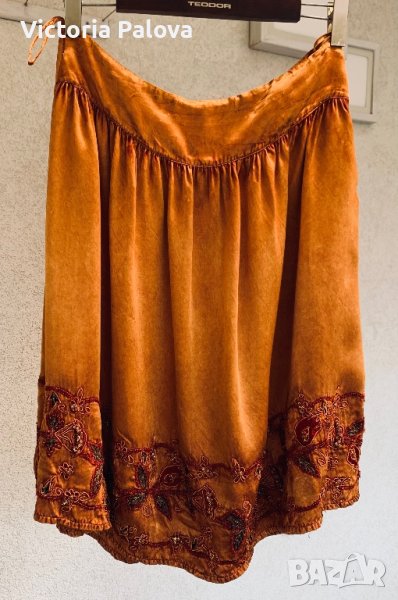 Прекрасна пола,тежка и студена материя,дължина -65см,талия-42-43см,широк колан(9см).полата прекрасно ще се съчетае с обикновен потник или тениска,защото е достатъчно ефектна.
