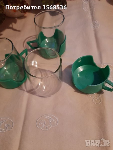 Огнеупорни чаши с пластмасови подстакани за чай