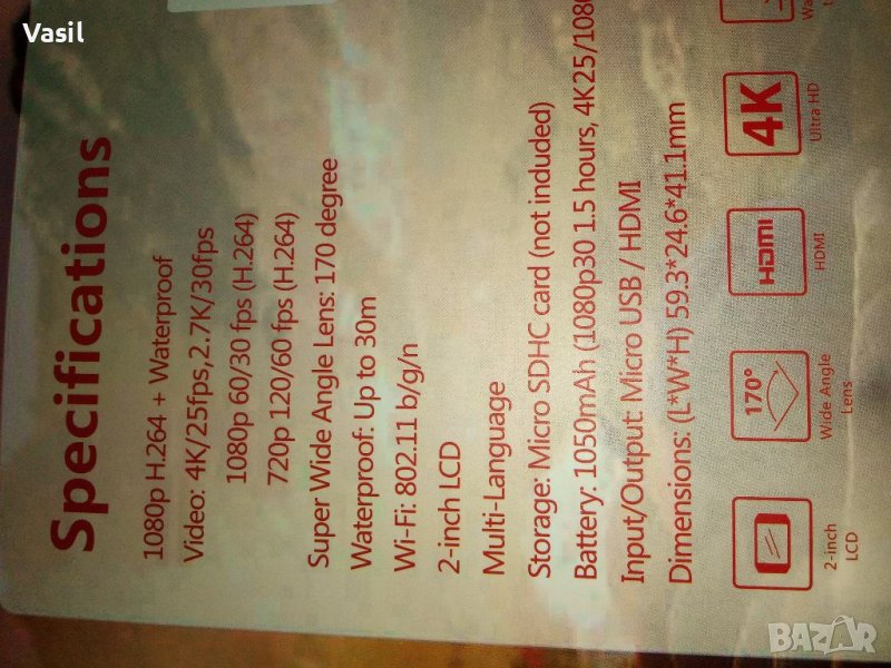 Екшън камера 4К **100лв**, снимка 1 - Друга електроника - 41085841 Екшън камера 4К **100лв**, снимка 2 - Друга електроника - 41085841 Екшън камера 4К **100лв**, снимка 3 - Друга електроника - 41085841 Екшън камера 4К **100лв**, снимка 4 - Друга електроника - 41085841 Екшън камера 4К **100лв**, снимка 5 - Друга електроника - 41085841 Екшън камера 4К **100лв**, снимка 6 - Друга електроника - 41085841 1/6