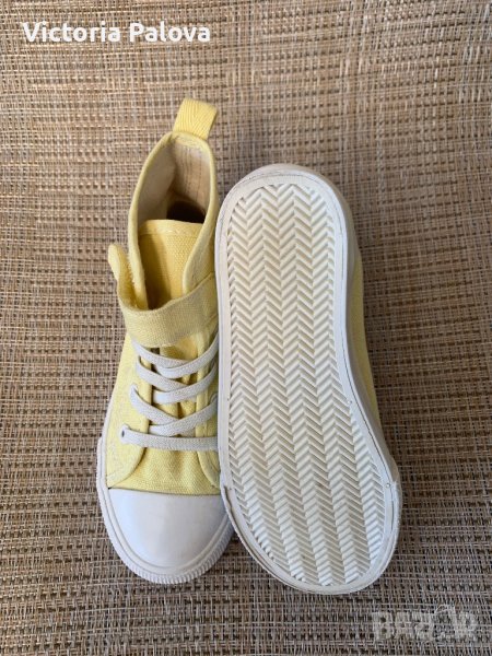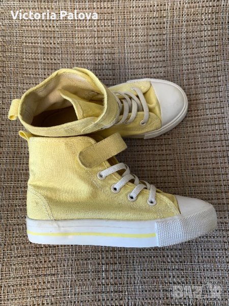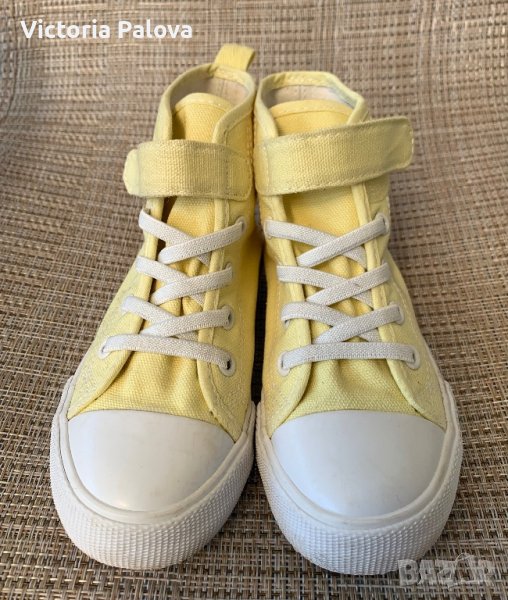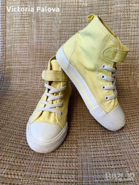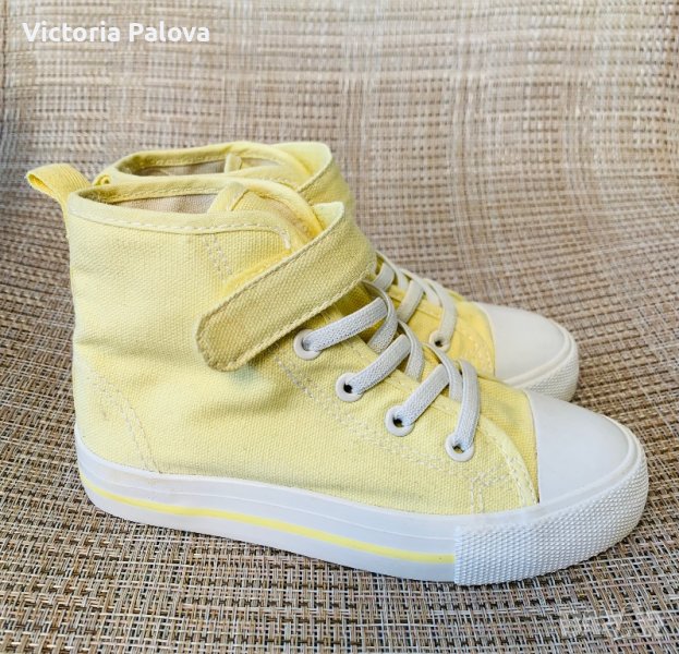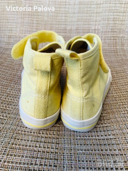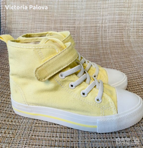 Леки удобни високи кецове от памучен брезент с еластични връзки отпред(не се връзват) и каишка със закопчалка със самозалепваща се лента в горната част за лесно обуване и събуване.17,5см.неупотребявани.