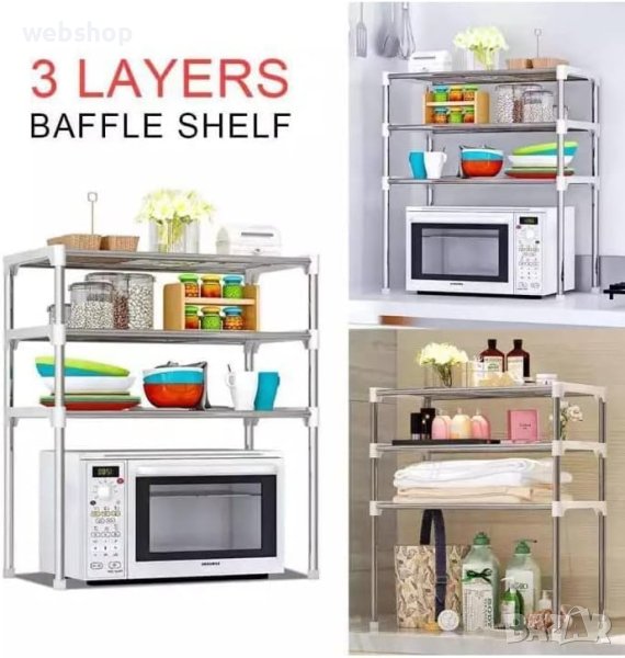 1 брой: Етажерка подходяща за поставяне над микровълнова пека на 3 нива;