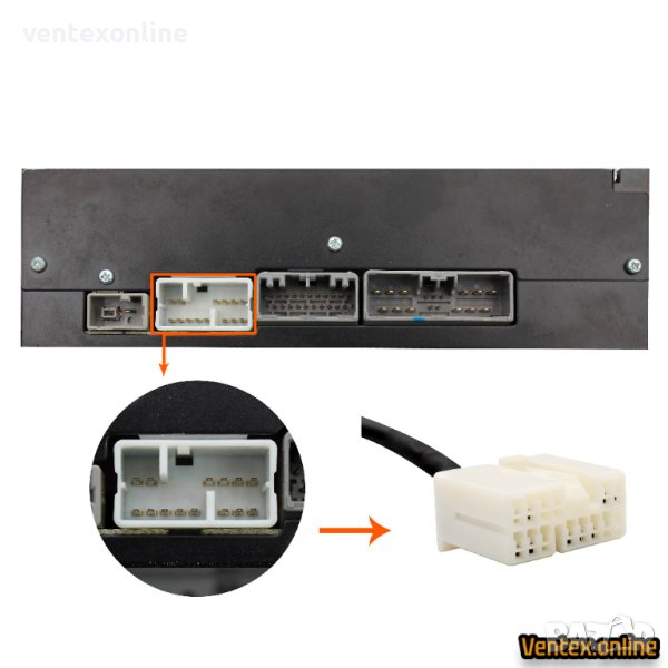 Адаптера се свързва от задната страна на радиото и може да го изкарате на подходящо за вас място. Aux 3.5мм и USB порт, който ви позволява да свържете телефон, таблет, MP3 плеър и др.