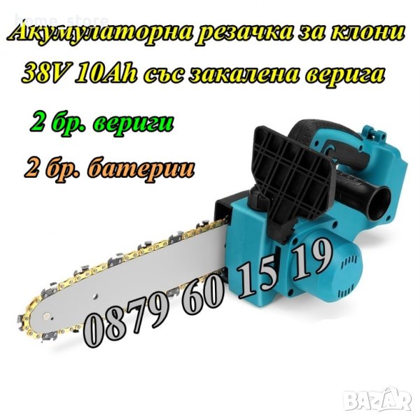 Акумулаторна резачка за клони 38V 10Ah/2 бр. закалена верига и смазване, снимка 1 - Градинска техника - 41098062 Акумулаторна резачка за клони 38V 10Ah/2 бр. закалена верига и смазване, снимка 2 - Градинска техника - 41098062 1/2