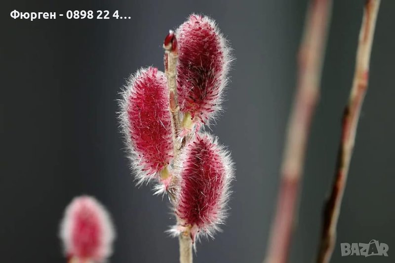 . Храстът изглежда най-добре през февруари, когато клоните на растенията се изпълват с пухкави,червено – розови цветчета. Достига височина не повече от 1,5-2,0м.Цъфтежът започва още от ранна пролет.Короната на растението е плоско закръглена. След като прецъфти(10 дена) цвета се превръща в сребристо-жълти пухчета. Листата са сиво-зелени със финно назъбен край. Не е претенциозно към почвите, но предпочита влажни, глинести почви.Издържа на слънце. Оформянето става началото на прлетта, като се изрязват кривите и болни издънки.