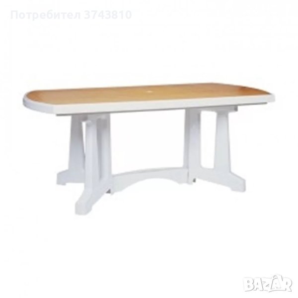 Правоъгълна маса изработена от висококачествена пластмаса, предназначена за външна употреба. Изключително стабилна и удобна тя е подходяща, както за градини и заведения, така и за тераса или двор. Масата се предлага в бял цвят с дървесен десен.