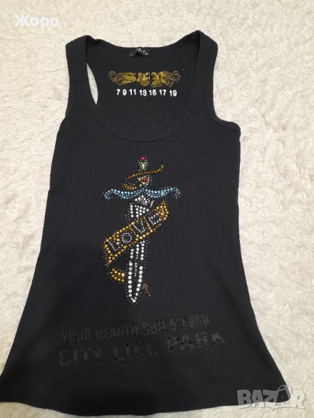 Дамски потник.Цвят-черно,размер-S.Потника е рипсана материя с камъни.Обличан е веднъж и е в отлично състояние.