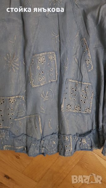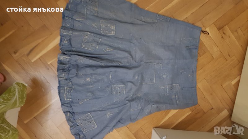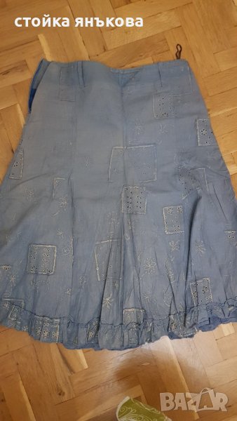 Продавам елегантна пола синьо със златисти орнаменти и бродерии, лек памучен плат с подплата. Размер М
