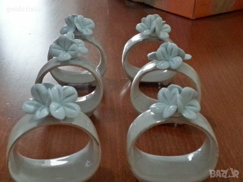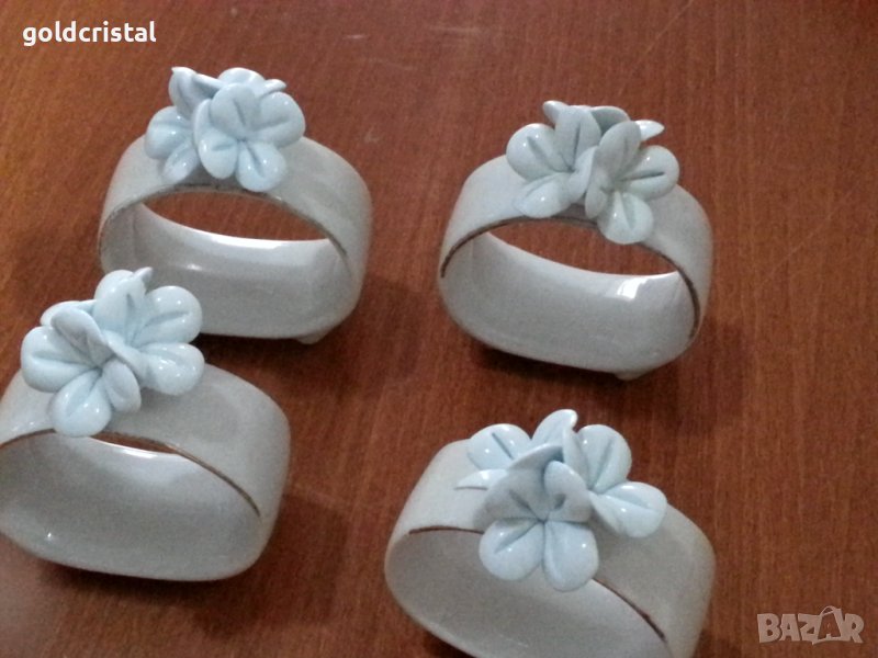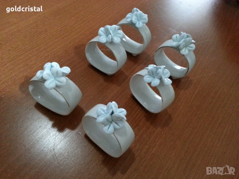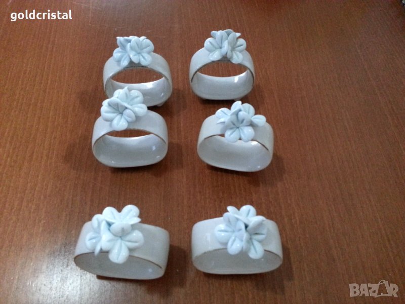 6 бр-90лв налични 12 бр Порцеланови пръстени за салфетки халки пръстени рингове с красиво синьо цвете пластика от цветен порцелан ръчна изработка сервиз комплект сет лот ретро арт декор винтидж колекция стари антикварни предмети обзавеждане за дома и семейството подходящи за подарък за ценители и колекционери