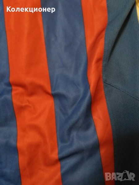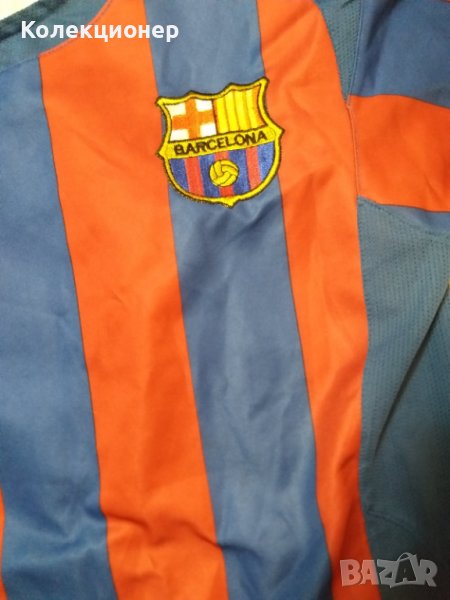 Оригинална тениска от култовата серия Nike 90, носена от Роналдиньо по време на престоя му в Барселона. Класическите червено-сини райета, емблемата на клуба, номер 10 и името на легендарния играч отзад. Производство – Португалия. Подходяща както за фенове, така и за колекционери. Размер: L (според етикета – 183 см височина).