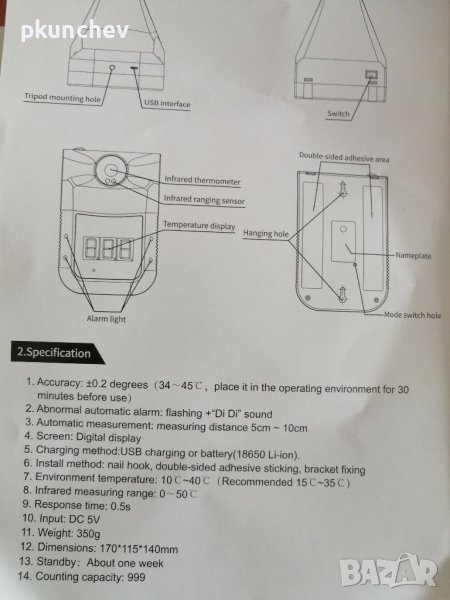 АВТОМАТИЧЕН, ИНФРАЧЕРВЕН, БЕЗКОНТАКТЕН МЕДИЦИНСКИ ТЕРМОМЕТЪР К3