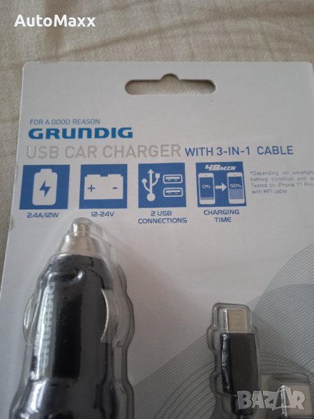 Зарядно за смарт тел.и таблет 12-24V GRUNDIG, снимка 1 - Зарядни за кола - 41120688 Зарядно за смарт тел.и таблет 12-24V GRUNDIG, снимка 2 - Зарядни за кола - 41120688 Зарядно за смарт тел.и таблет 12-24V GRUNDIG, снимка 3 - Зарядни за кола - 41120688 Зарядно за смарт тел.и таблет 12-24V GRUNDIG, снимка 4 - Зарядни за кола - 41120688 1/4
