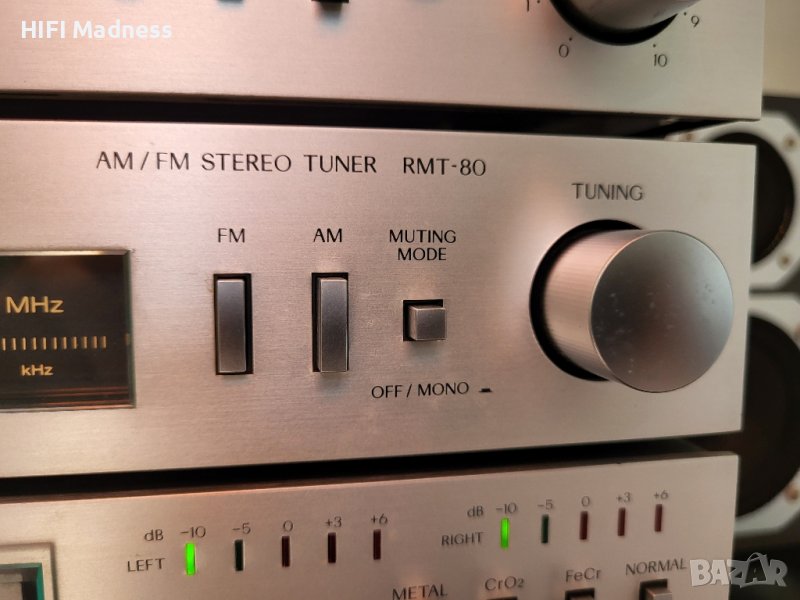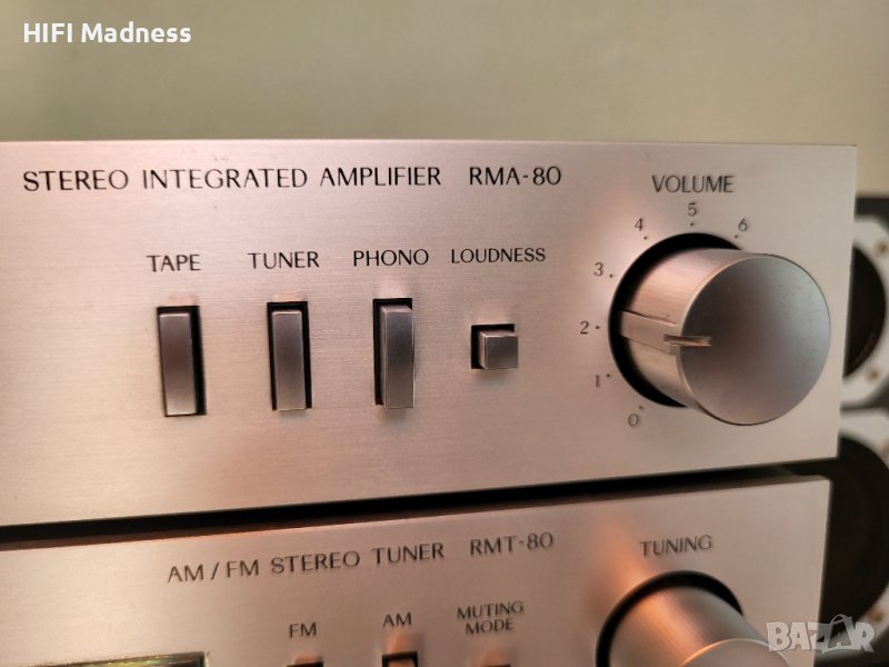 • Въртящи се контроли за бас, високи, баланс и сила на звука. Бутони за захранване, лента, тунер, грамофон и сила на звука. Шест LED индикатора за мощност. Входни гнезда за грамофон, тунер и лента. Жак за слушалки. Захранващи контакти за тунер RMT-80 и касетен дек RMD-80.