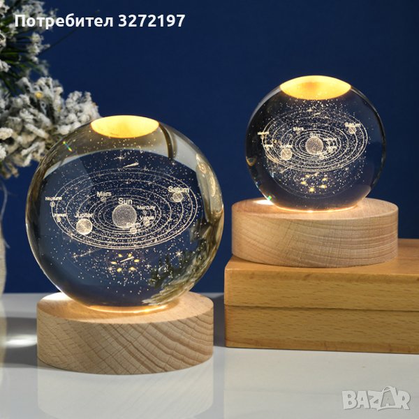 LED Светеща кристална топка/лампа,3D сензорна-Вселена,Планетарна Галактика,Слънце
