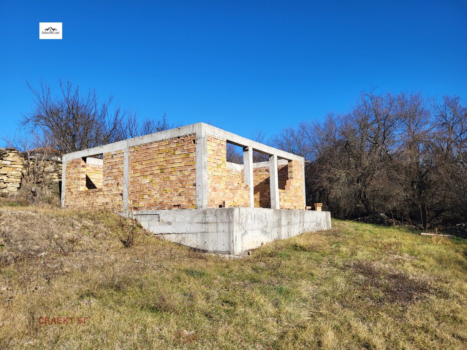 For sale is a new legally rebuilt ( just the shell , needs finishing ) 2 bedroomed house of 64 m2 with a total of 2 522 m2 of building land ( two or can be three plots ) and all legal documentation ( planning permission with valid building permission ) , water and electricity supplied to the property, all road etc regulations applied ( access via two roads that finish on the property ) .