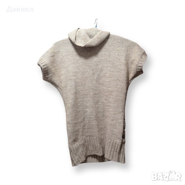 Дамски пуловер с къс ръкав и голяма яка. Размер S.