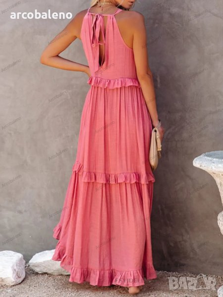 Дамска едноцветна A-силуетна дълга рокля без ръкави, 4цвята