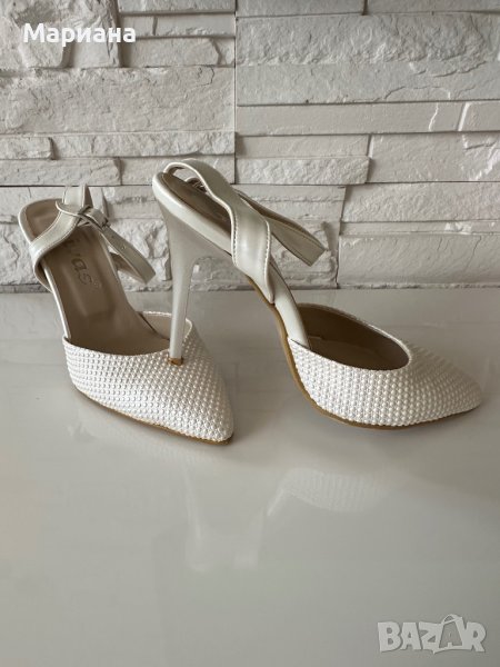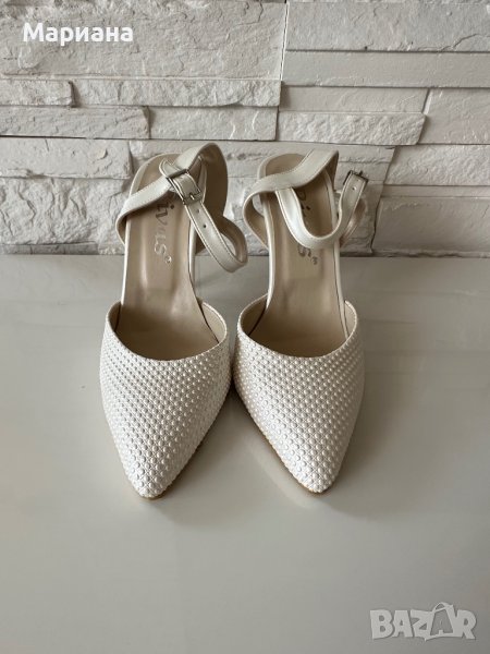 Дамски обувки на ток Rivas. Височина на тока: 10 см. Носени са само няколко часа на сватба. Цвят: бяло.
