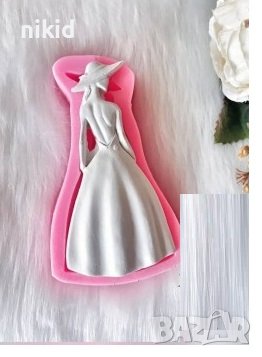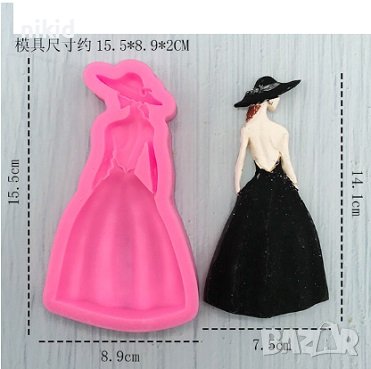 Дама жена цял ръст с дълга рокля и шапка капела силиконов молд форма фондан гипс декор → Обява 41126529