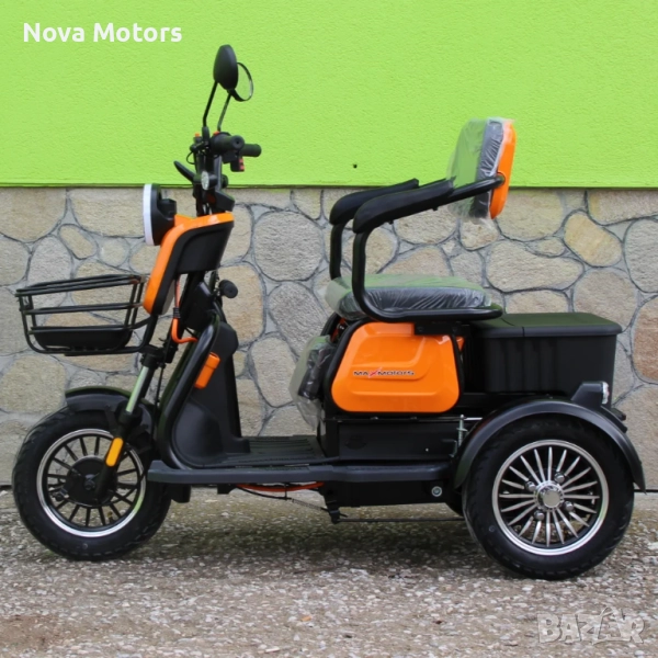 Уникална триместна триколка X1 - без аналог на пазара. Триколката е с дигитално табло, три нива на скоростта, стопове, мигачи и габарити, LED фар. Предна и задна ръчни спирачки. Крачна спирачка. Голям кош за багаж. Триколката е с вградена втора седалка за допълнителен пасажер, като самата седалка се движи във височина, което създава удобство за нисък или висок човек.