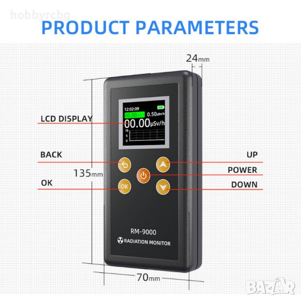 Дозов еквивалент: 0,01~100 μSv/h