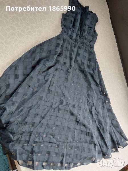Дълга черна дантелена рокля с много красиви мотиви на квадратчета придава допълнителен в отлично състояние.Отзад се закопчава с цип.
