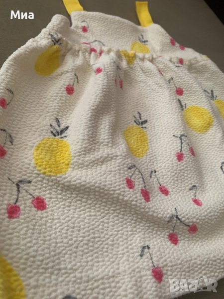 Бебешка рокля Zara с презрамки, размер 9-12 месеца / 80см, жълт цвят с лимони и череши, 48% памул, 52% полиестер. Без забележки!